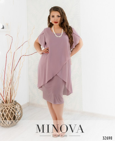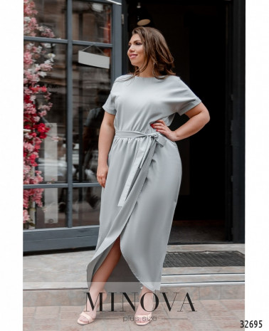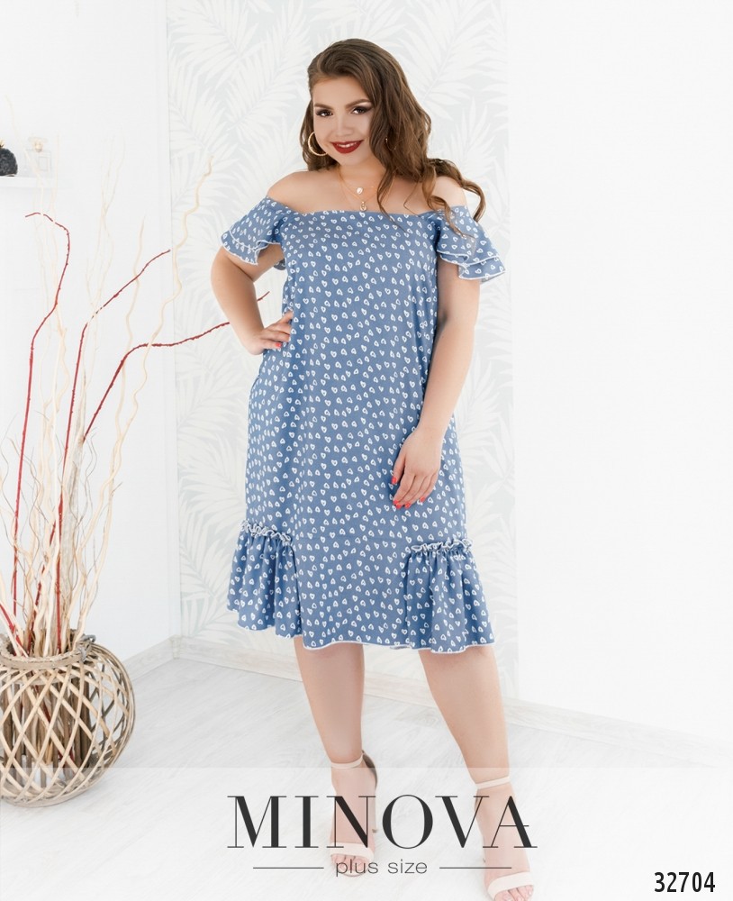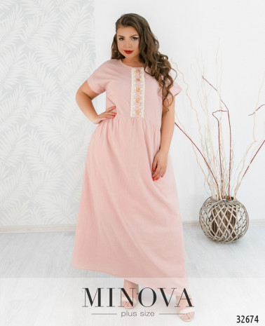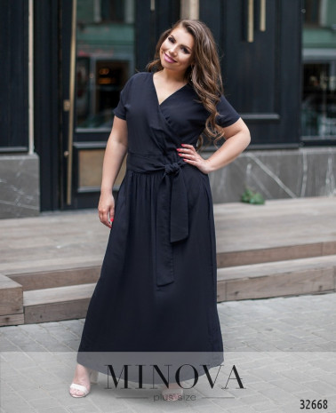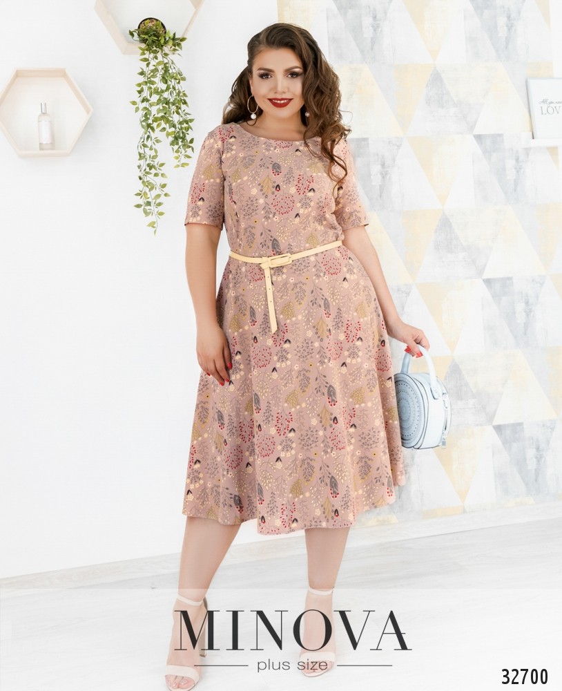 Романтична сукня батал без кишень, з відрізним подолом, рукава без манжетів. Застібка - блискавка, вшита по спинці. На грудях скульптуруючі виточки. Виріз горловини півкруглий.