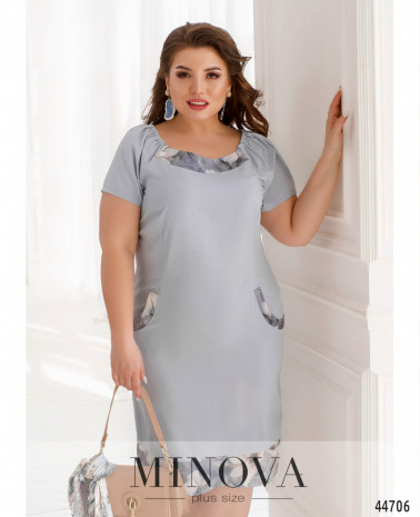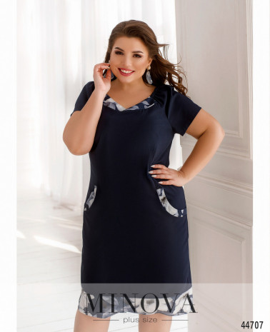 Изысканное минималистичное платье батал с вырезом горловины "каре". Подол отрезной, ткань на подоле присобрана, на талии вытачки. По бокам - карманы в шве. Застёжка - вшитая по спинке молния, на лифе до талии - декоративные пуговицы. Рукава с округлым вырезом.