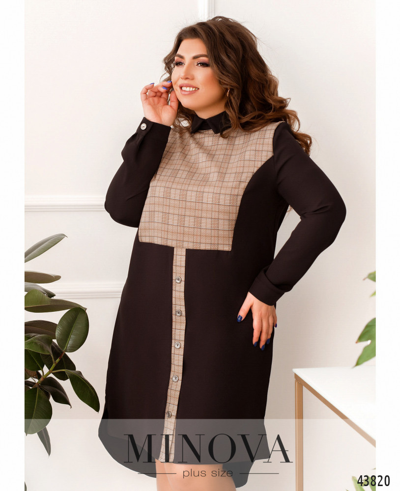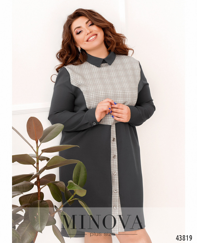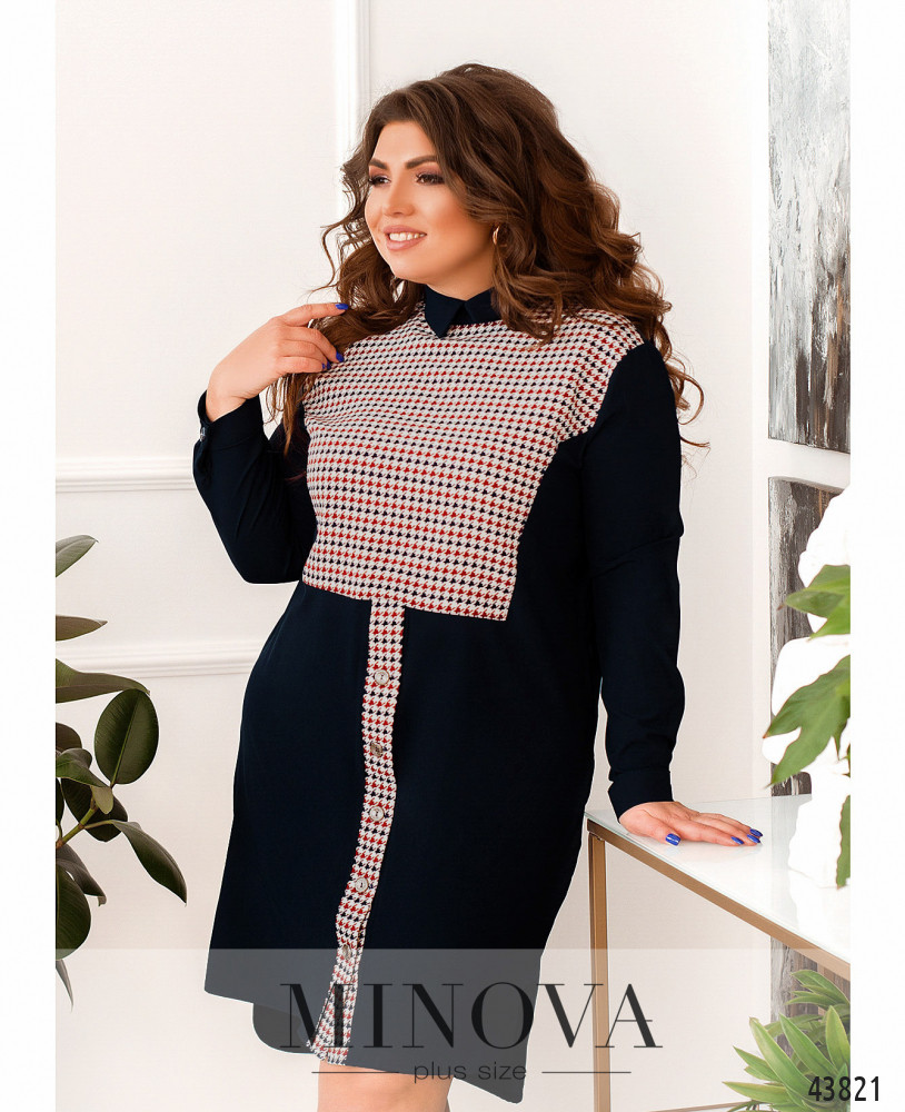 Стильна, жіночна сукня великого розміру з ультрам'якої і практичною тканини софт. Сукня з яскравим принтом, цільнокроєна, декорована по подолу оборкою, з боків - врізні кишені. В рукава на зап'ястях вшиті манжети, застібка - гудзик ззаду під шиєю.