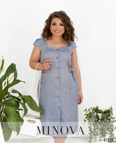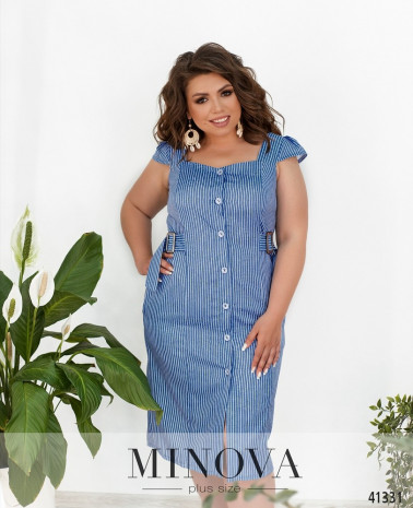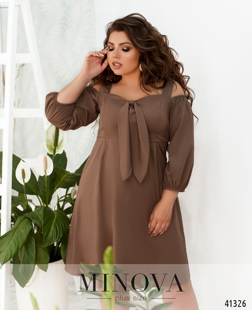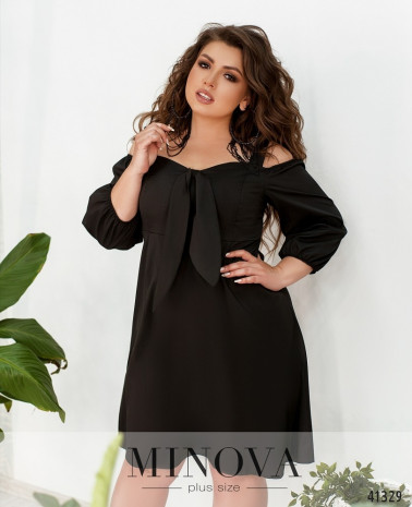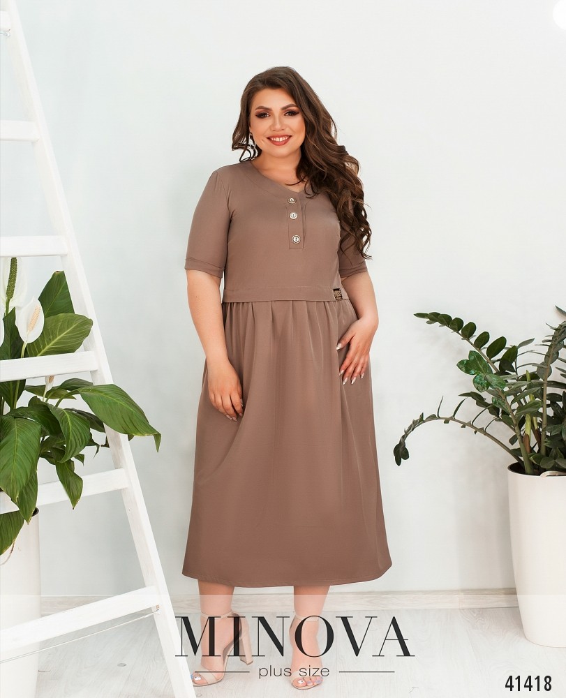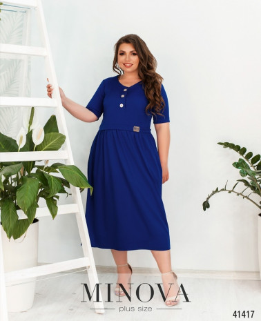 Романтична сукня батал без кишень, з відрізним подолом, рукава без манжетів. Застібка - блискавка, вшита по спинці. На грудях скульптуруючі виточки. Виріз горловини півкруглий.