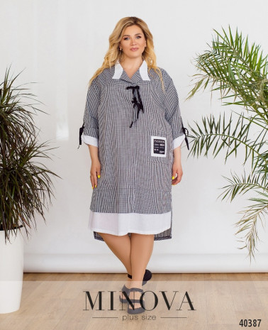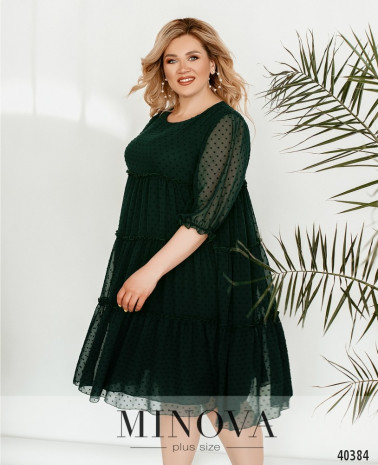 Стильное повседневное платье батал с несколькими рядами оборок на верхнем, полупрозрачном слое, украшенном горошком. Рукава со вшитыми резинками на месте манжет. Подкладочный слой мягкий, приятный к телу. Застёжек и карманов нет.