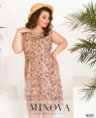 Легка, зручна та приваблива сукня батал з підкладкою та сіточкою. Сіточка призібрана оборками в декілька рядів. Рукава - из сіточки без підкладки. На зап'ястках вшиті резинки. Кишень та застібок немає, виріз горловини - "човник".