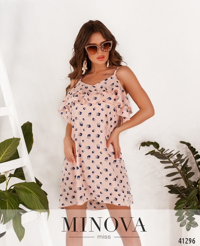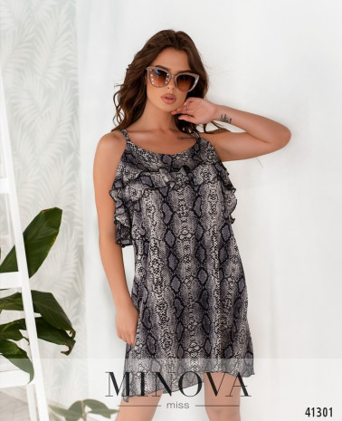 Яркое полосатое платье с поясом, подол подшит к лифу и присобран оборками. Застёжка - вшитая по спинке потайная молния. По бокам - врезные карманы. Рукава короткие, без манжет.