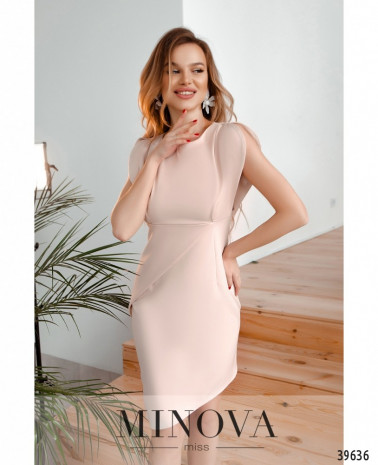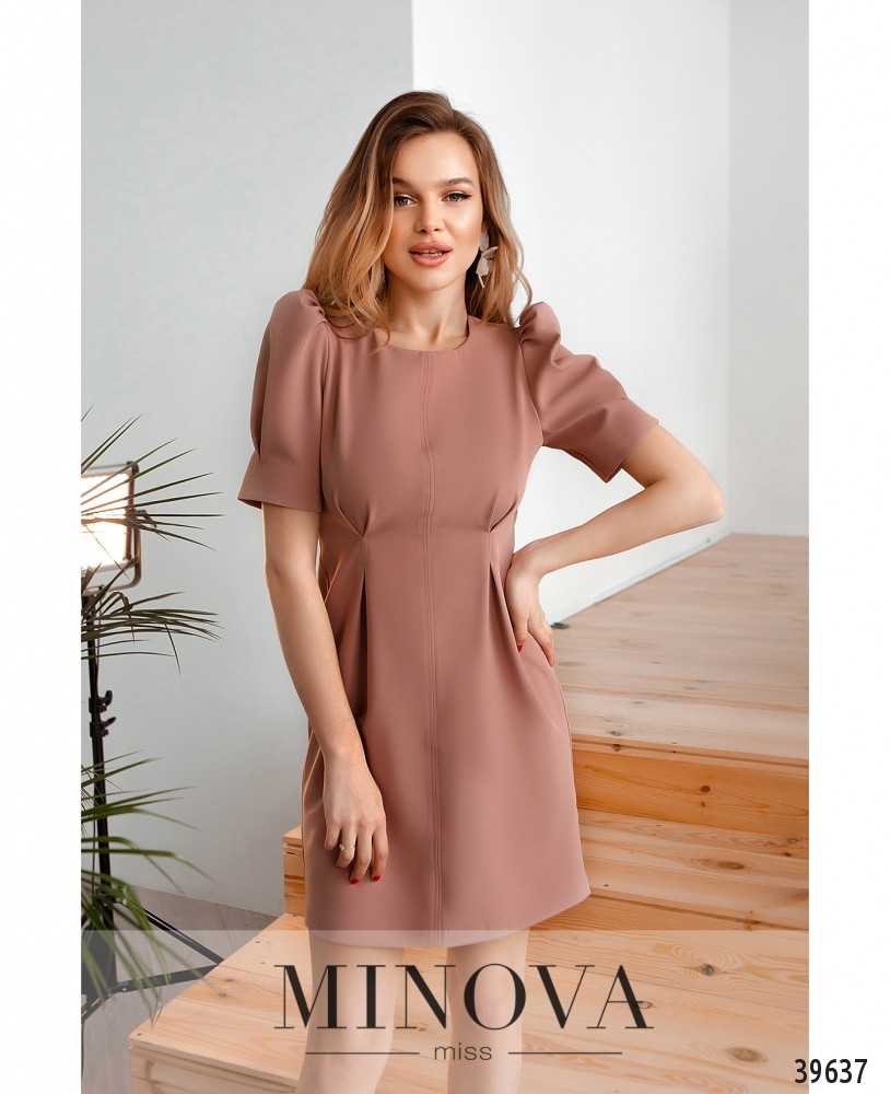 Чарівна мінімалістична сукня без кишень, з повздовжніми виточками спереду та по спинці, що робить силует приталеним. Рукава-ліхтарики, без манжетів, з декоративними складками. Застібка - вшита по спинці блискавка. Обираючи розмір, треба врахувати, що стегна мають лягати вільно.