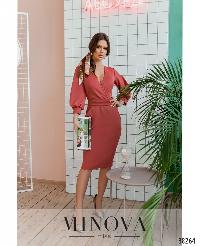 Женственное приталенное платье с карманами по бокам, в комплекте – пояс в тон. Рукава с небольшими мягкими манжетами без пуговиц. Лиф подшит на запАх, без застёжек.