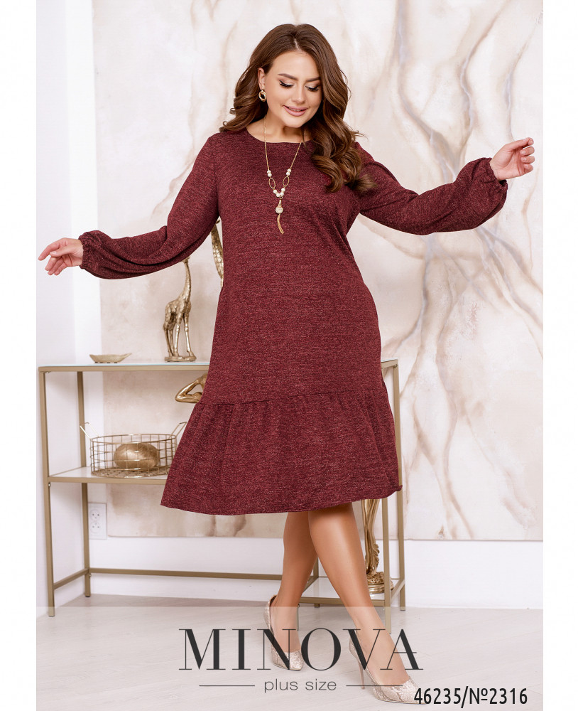 Яскрава сукня, виконана з тканини з люрексовою ниткою, дозволить вам в будь-яку погоду і пору року виглядати жіночно і привабливо. Модель без застібок доповнена довгими рукавами, кишенями в бічних швах і витонченим воланчиком, підшитим до подолу.