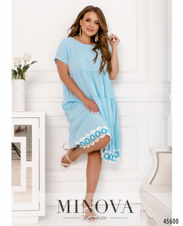 Романтичное однотонное платье с врезными карманами из легкой невесомой ткани подойдет и для прогулки с друзьями, и для поездки за город. Благодаря просторному А-силуэту вы будете чувствовать себя свободно и комфортно, а подол, состоящих из нескольких слоев оборок и дополненный кружевом, сделает ваш образ кокетливым и женственным. Пояс НЕ входит в комплект.