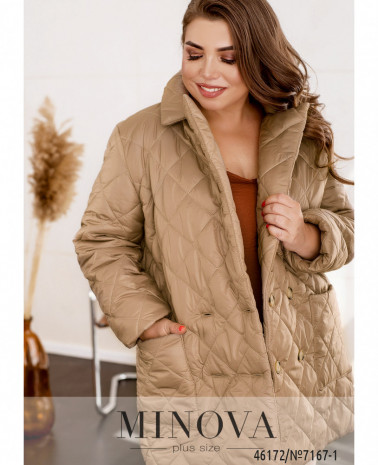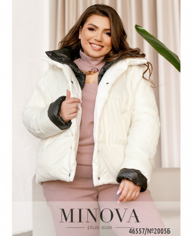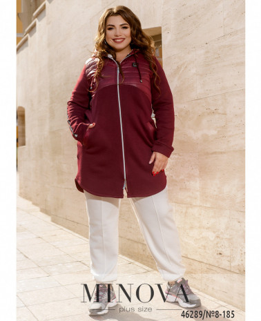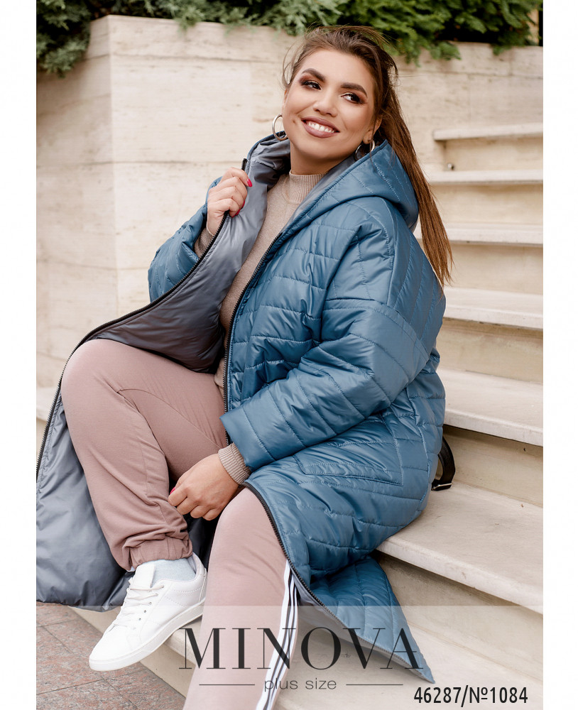 Зручна повсякденна куртка батал з підкладкою на місці прошитих частин. Капюшон зсередини м'який, ззовні гладенький. Ззаду на подолі шліца з декоративною стрічкою. Застібається на блискавку спереду по центру. Капюшон з пропущеним шнурком. Збоку на рукавах декоративні лампаси. З боків - кишені в шві.