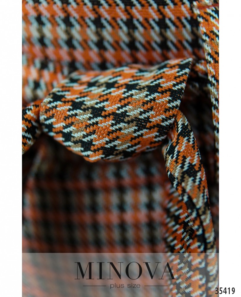 Мягкие брюки прямого кроя с высокой посадкой непременно должны быть в базовом гардеробе любой девушки! В новом каталоге Minova вы найдёте подходящую модель тёплой расцветки, в мелкую пёструю гусиную лапку. Брюки с поясом и шлейками для него, застёгиваются на молнию, вшитую на левом бедре. Длина брюк – до щиколотки. По бокам – врезные карманы. Такая модель будет хорошо сочетаться с нарядной блузой, однотонным свитшотом или пиджаком. Обувь предпочтительна классическая. Пояс/аксессуар входит в комплект.