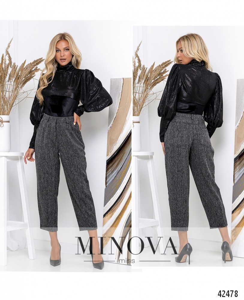 44 р-р: длина брюк по внутреннему шву 0см, длина брюк по внешнему шву с учетом пояса 91см, ОТ - 70см, ОБ - 106см.