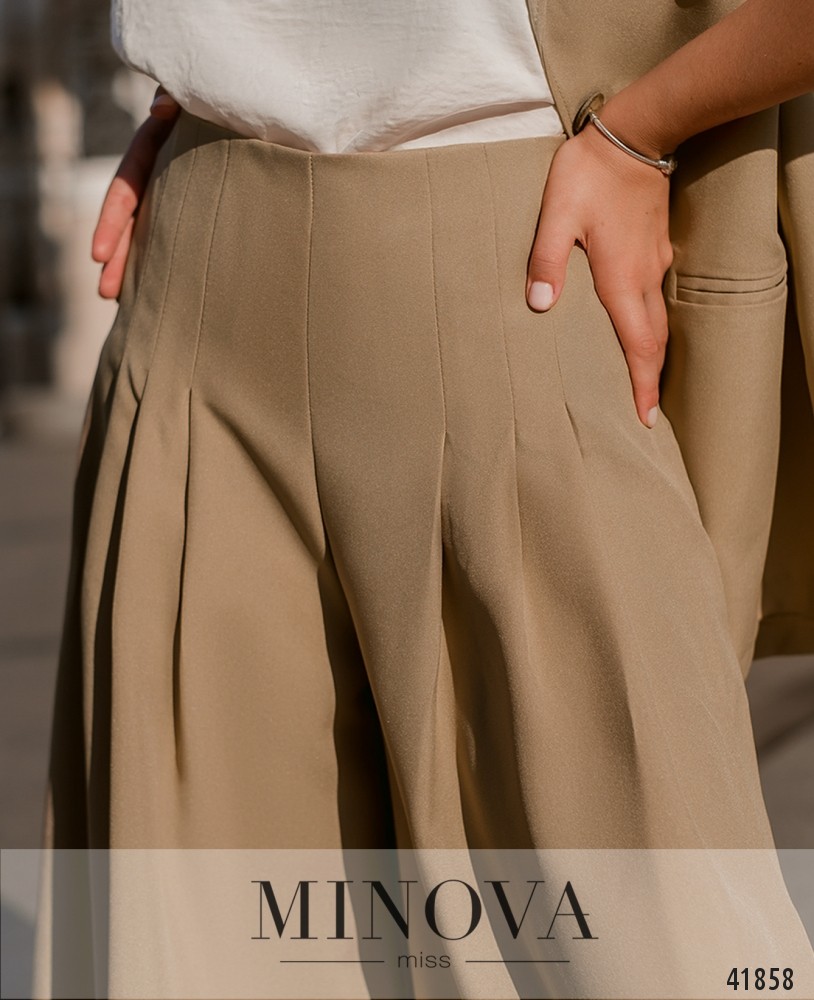 Стильные кюлоты с плиссированными оборками, без карманов, застёгиваются на молнию, вшитую слева. Посадка высокая.