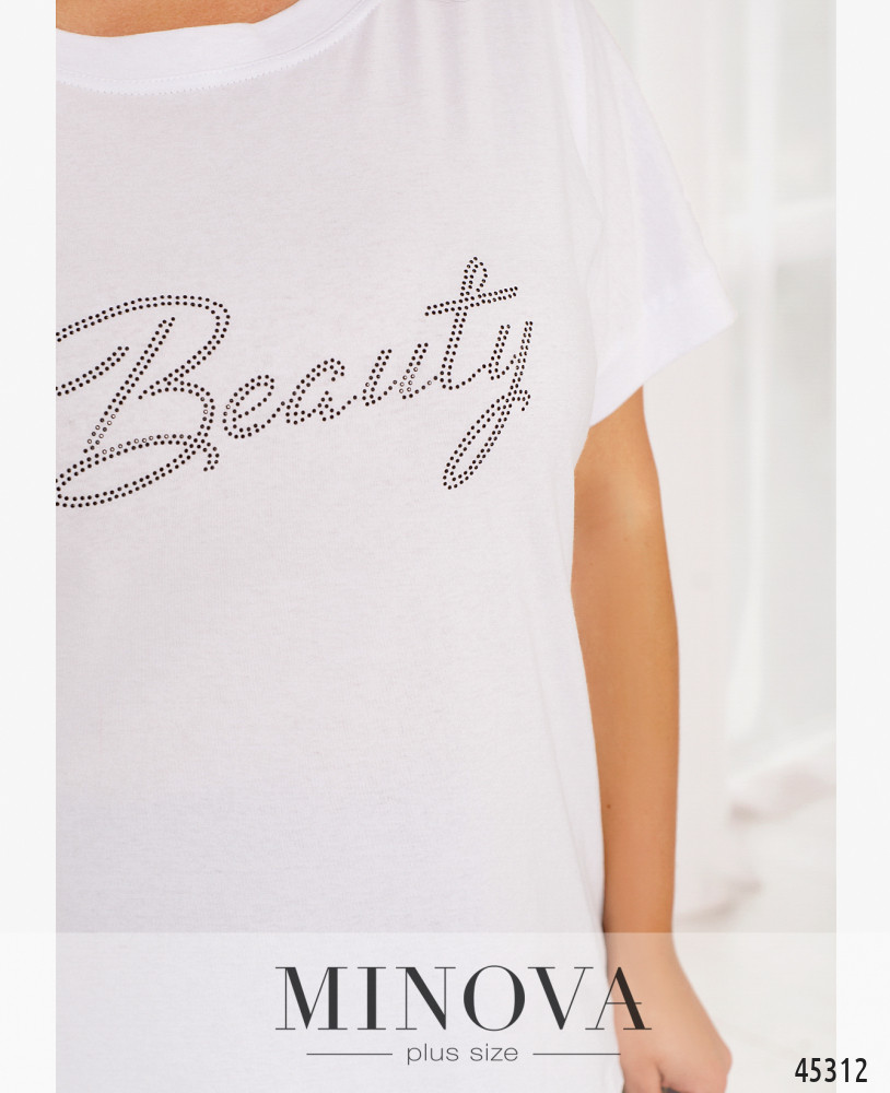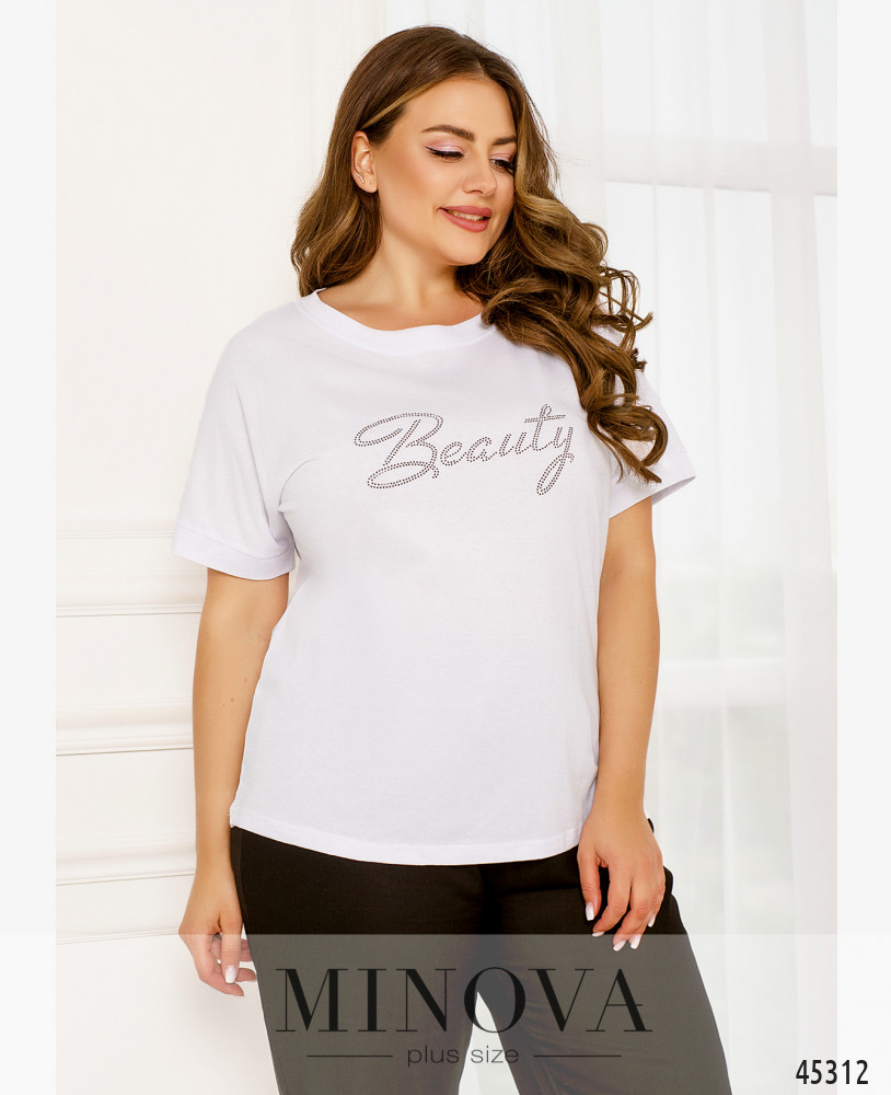 Базовая минималистичная футболка с коротким рукавом и полукруглым вырезом горловины выполнена из мягкого натурального хлопка. Эта модель, украшенная сверкающей декоративной надписью на груди, станет идеальным дополнением вашего базового летнего гардероба.