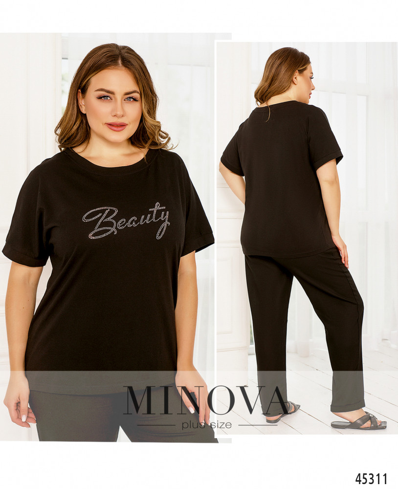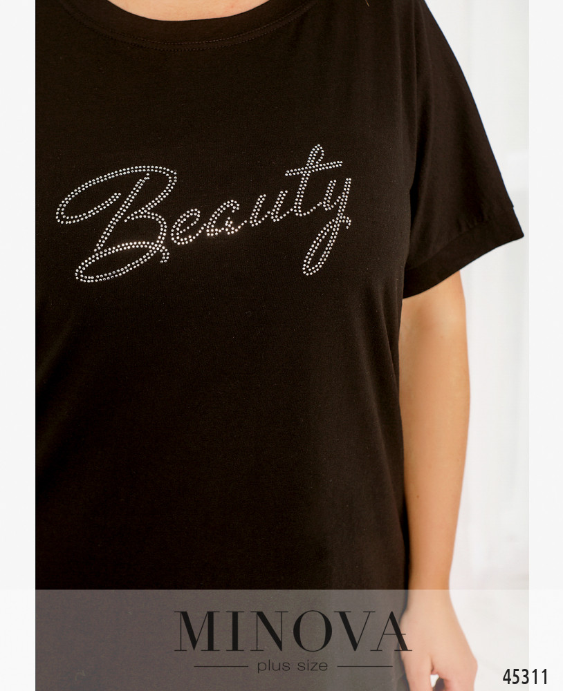 Базовая минималистичная футболка с коротким рукавом и полукруглым вырезом горловины выполнена из мягкого натурального хлопка. Эта модель, украшенная сверкающей декоративной надписью на груди, станет идеальным дополнением вашего базового летнего гардероба.