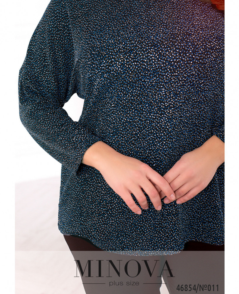 В этой сияющей кофточке лаконичного фасона вы точно не останетесь без внимания окружающих. Модель свободного силуэта с полукруглым вырезом горловины и цельнокроеными рукавами позволит вам выглядеть эффектно на празднике или вечеринке.