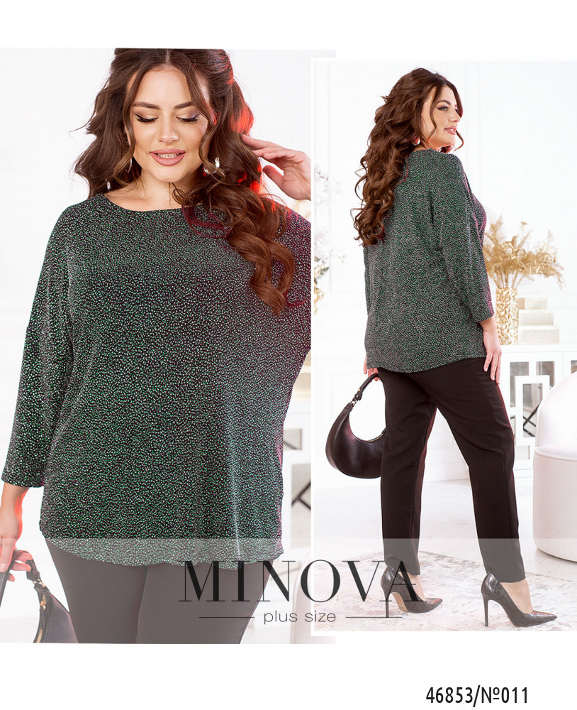 В этой сияющей кофточке лаконичного фасона вы точно не останетесь без внимания окружающих. Модель свободного силуэта с полукруглым вырезом горловины и цельнокроеными рукавами позволит вам выглядеть эффектно на празднике или вечеринке.