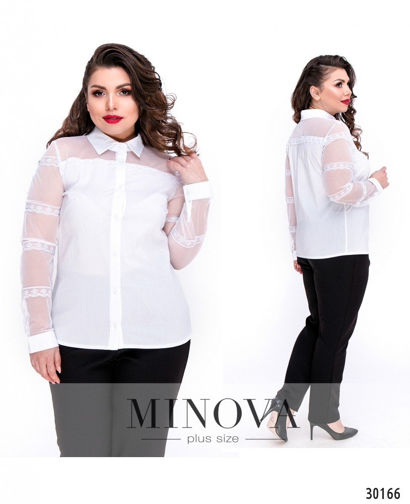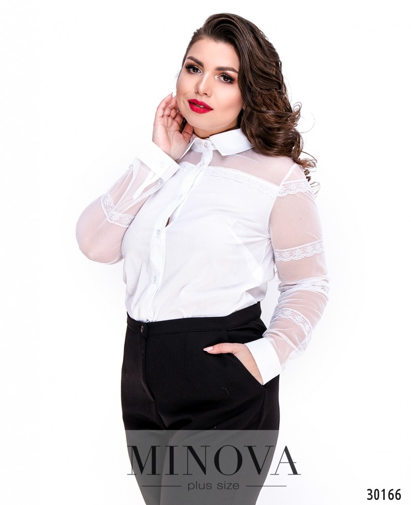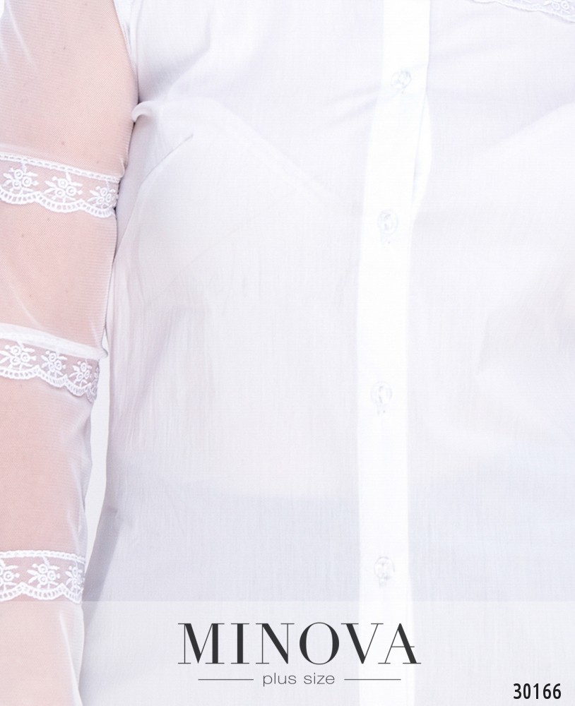 Блуза на пуговицах с прозрачными вставками. Блуза застегивается на лицевой стороне на пуговицы. Блуза оформлена кокеткой из сетки и сетчатыми рукавами. Рукава и швы кокетки украшены кружевной лентой. Рукава собраны в манжеты с пуговицами.