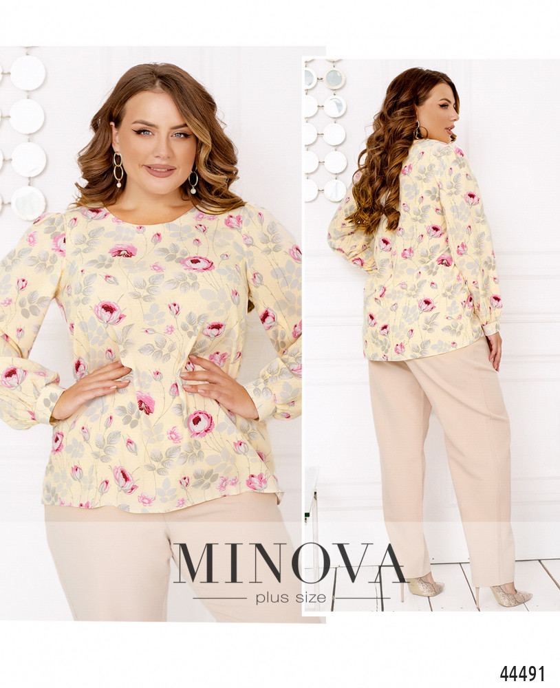 58-60 р-р: длина блузки 59-73см, длина рукава от плечевого шва 64см, обхват рукава 49см, ОГ - 122см, ОТ -129см, ОБ -134см.