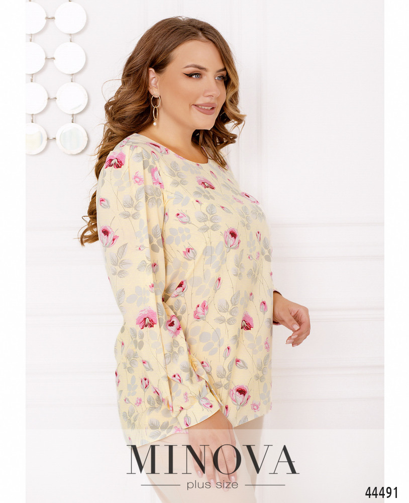 50-52 р-р: длина блузки 57-71см, длина рукава от плечевого шва 62см, обхват рукава 43см, ОГ - 106см, ОТ -113см, ОБ -118см.
