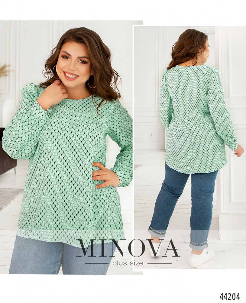 58-60 р-р: длина блузки 59-73см, длина рукава от плечевого шва 64см, обхват рукава 49см, ОГ - 122см, ОТ -129см, ОБ -134см.