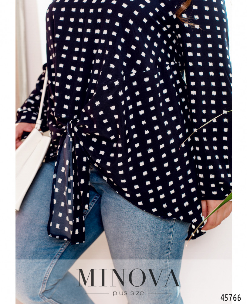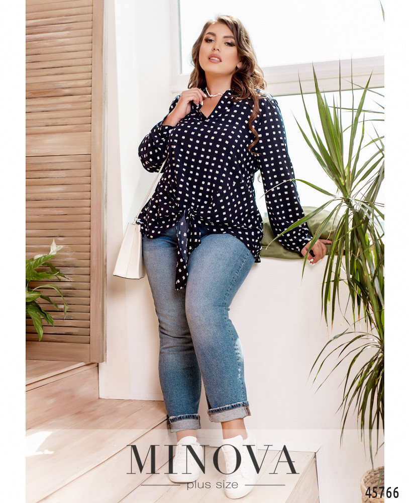 Яркая стильная рубашка с воротником и длинными рукавами с манжетами создает не только красоту, уверенность и комфорт, но и подчеркивает индивидуальный стиль. Изюминкой данной модели является ассиметричный подол, удлиненный по спинке, и завязки спереди.