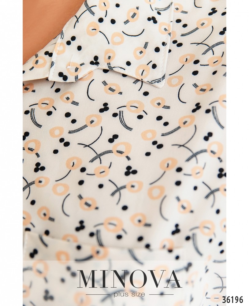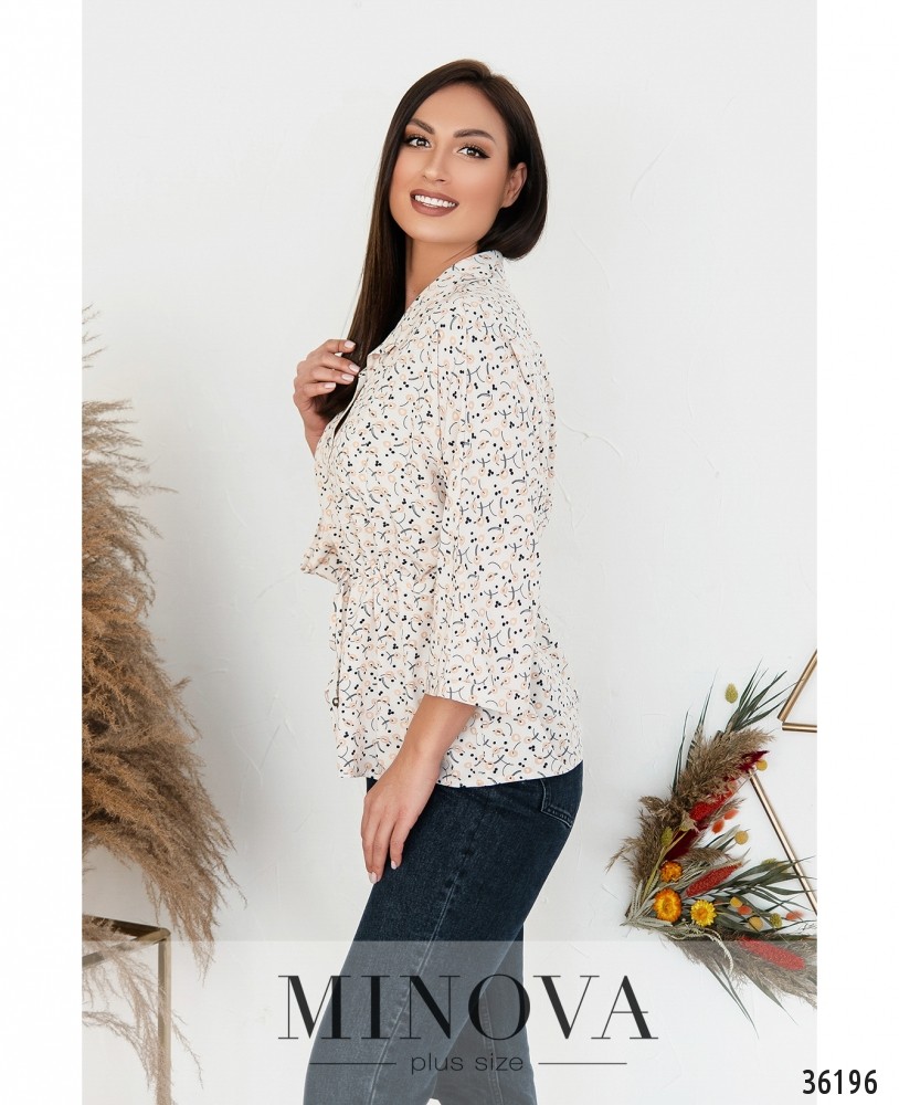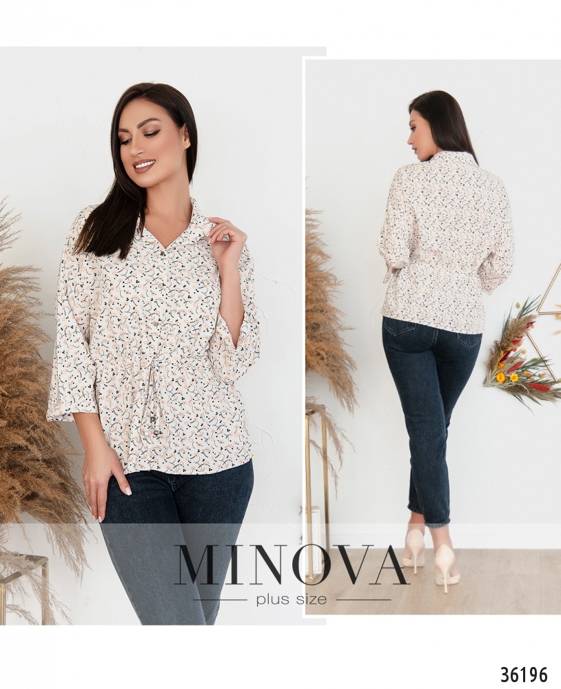 Стильная рубашка батал из новой коллекции женской одежды больших размеров от Minova будет хорошо смотреться как с брюками, так и с джинсами. Особый интерес представленной модели в том, что она прямого свободного кроя, но ты можешь сделать её приталенной благодаря пропущенному через пояс шнурку с набалдашниками на концах. Рубашка застёгивается на три пуговицы от отложного воротничка почти до низу. Рукава длиной ¾ , без манжет. На левой стороне груди – накладной кармашек. Прекрасный вариант для твоего повседневного, чуть более нарядного, гардероба.