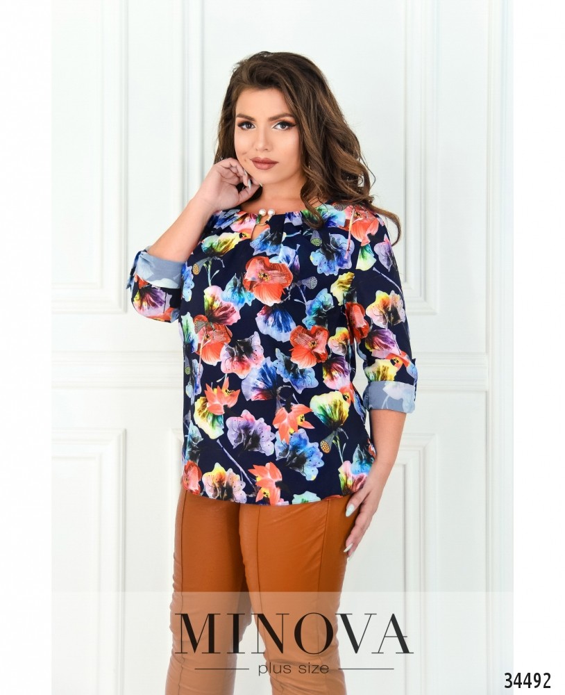 Любите яркость? Броские художественные акварельные цветы идеально выразят ваше мировоззрение! Предпочитаете более классические варианты? Можете выбрать принт в мелкие шестиугольники типа пчелиных сот на нежном пастельном фоне. И всё это – блузы батал из лёгкой ткани свободного кроя, представленные в новом каталоге Minova. Блуза присобрана на вырезе горловины, а потому создаётся А-силуэт. Рукава полной длины, но их можно регулировать с помощью ленты и пуговки, укорачивая до длины ¾. Застёжек нет, на горловине небольшой каплеобразный вырез с продетой через него полукруглой «застёжкой» с двумя «жемчужными» бусинками. Прекрасный выбор на каждый день, можете сочетать такую модель с удобными джинсами или строгими брюками.