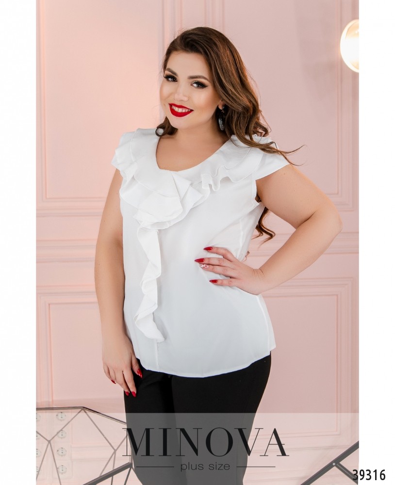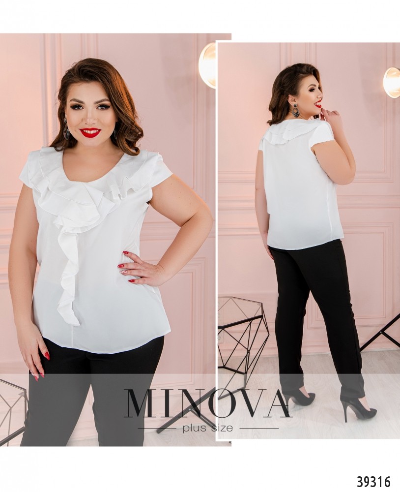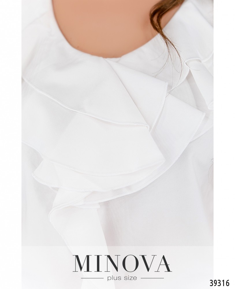 Нарядная рубашка большого размера, украшенная оборками на вырезе горловины и ниже. Рукава очень короткие, карманов и застёжек нет.