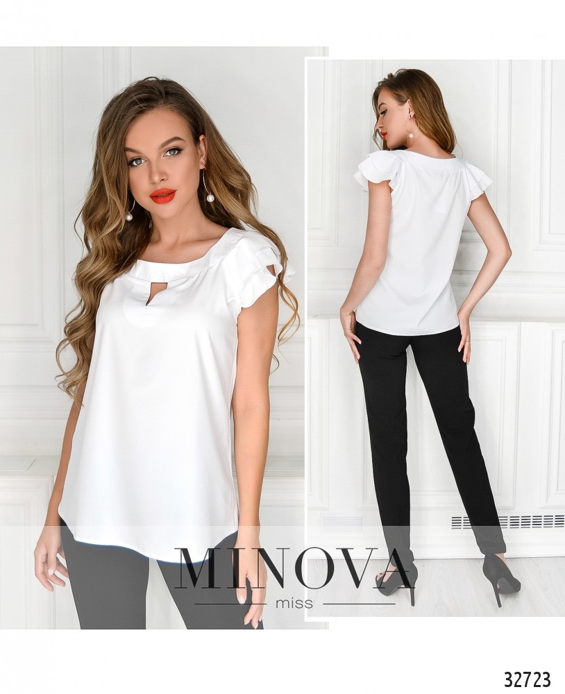 Живописный принт этой блузки из каталога летней одежды Minova особенно стильно смотрится на тёмном фоне. Любите быть неотразимой, создавать праздничное настроение? Этот вариант именно для вас! А если нравится фасон, но нужно что-то более строго-деловое, остановите свой выбор на белом варианте. У блузы широкая горловина, спереди под воротом небольшой вырез. На рукавах – два ряда нежных рюш. Крой прямой, без карманов и застёжек. Материал воздушный, не тянется, не просвечивает. Украсит гардероб девушек с «грушевой» или «яблочной» фигурой.