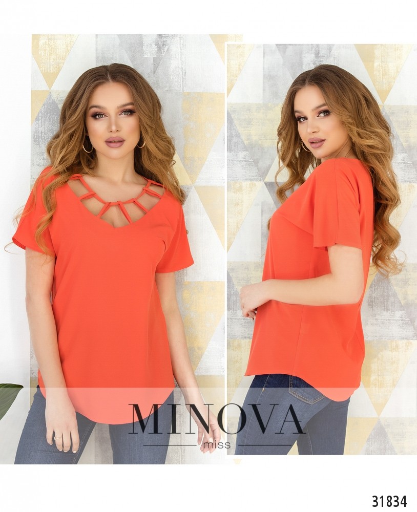 44 р-р: длина блузы 66см, длина рукава 16см, обхват рукава 31см, ОГ – 94см, ОТ – 90см, ОБ – 98см.
