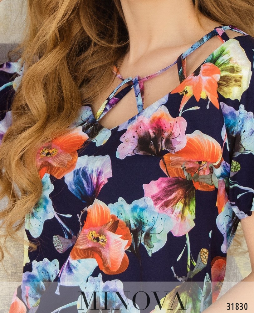44 р-р: длина блузы 66см, длина рукава 16см, обхват рукава 31см, ОГ – 94см, ОТ – 90см, ОБ – 98см.