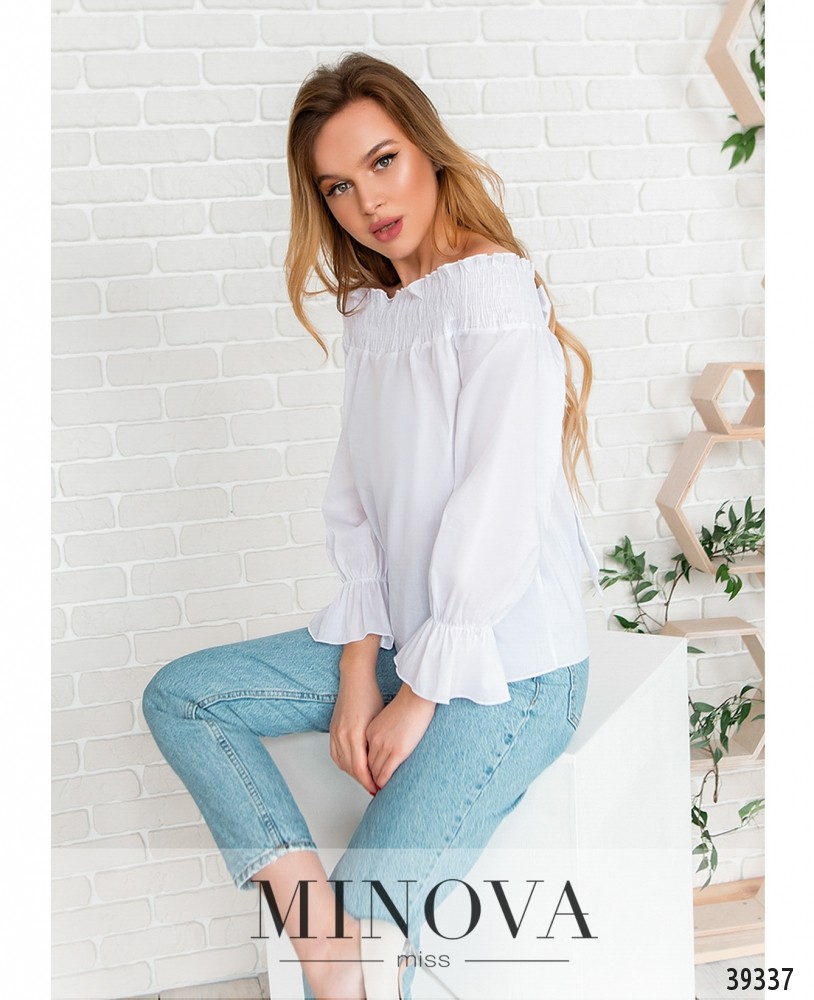 Романтичная блуза с открытой линией плеч "new romantic", сверху вшита широкая резинка и подшиты широкие ленты, которые можно завязать бантом. Рукава со вшитыми в запястье резинками и присобранными манжетами. Карманов и застёжек нет. Блузка свободного покроя, носится свободно, что стоит учитывать при подборе размера.