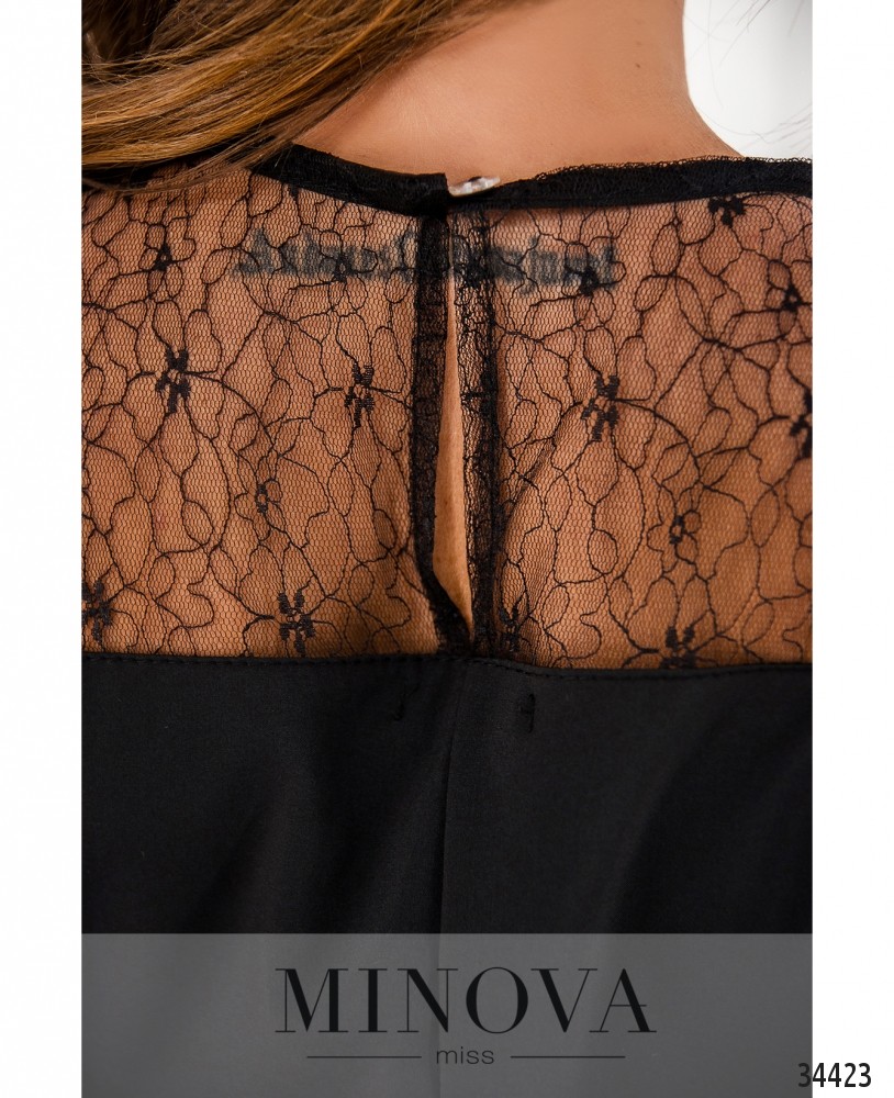 Нарядная и нежная блузка из каталога женской одежды от Minova придаст вашему официальному наряду нотку женственности и элегантности. Блуза из очень лёгкой ткани, украшена вставками тонкого гипюра на плечах, а рукава выполнены полностью из гипюра без подкладки и украшены тканевыми лентами-бантами чуть выше манжета. На груди – поперечные вытачки, застёгивается блуза на небольшую пуговку под шеей. В каталоге представлены классические цвета: чёрный и белый. Вы можете сочетать их с деловыми брюками, юбкой или даже с тёмными прямыми джинсами. Оттенить образ помогут яркие аксессуары. Блуза будет особенно удачно смотреться на фигуре типа «груша» или «яблоко».