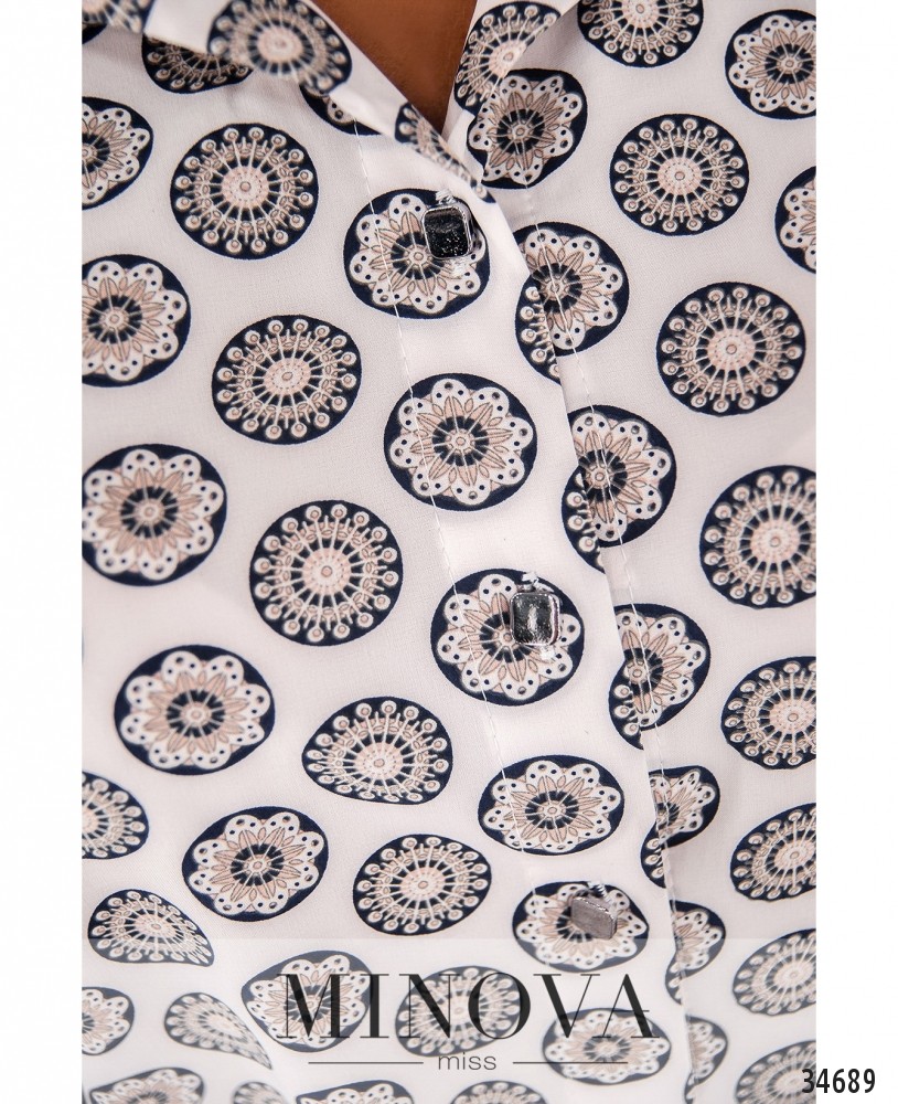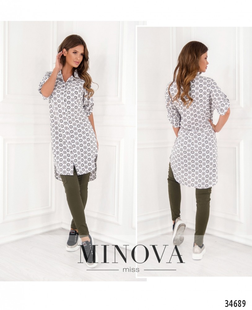 Если для вас главное – свобода и комфорт, то стоит купить для своего повседневного гардероба лёгкую тунику из нового каталога Minova. Туника пошита по фасону платья-рубашки, она длинная, мягкая и приятная к телу. Воротничок отложной, полный ряд пуговиц от воротника до подола. Рукава длиной ¾, без манжет. Подол по спине чуть длиннее. Карманов нет. Принт приятный и неброский: ряды круглых цветов, на светлом или тёмном фоне. Такой принт добавляет стройности и роста, поэтому лучше всего будет смотреться на фигуре типа «груша» или «яблоко». Можете носить тунику как самостоятельный элемент одежды или сочетать с джинсами, обувь может быть и спортивной, и классической на каблуке любой высоты. Украшение не входит в комплект. Пояс/аксессуар не входит в комплект.