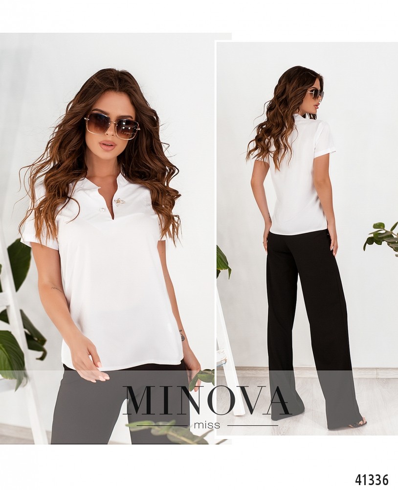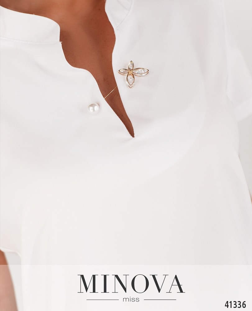Удобная и лёгкая рубашка с коротким рукавом, без застёжек и карманов, в комплекте - булавка-брошь с бабочкой. Рукава без манжет, воротник-стоечка.