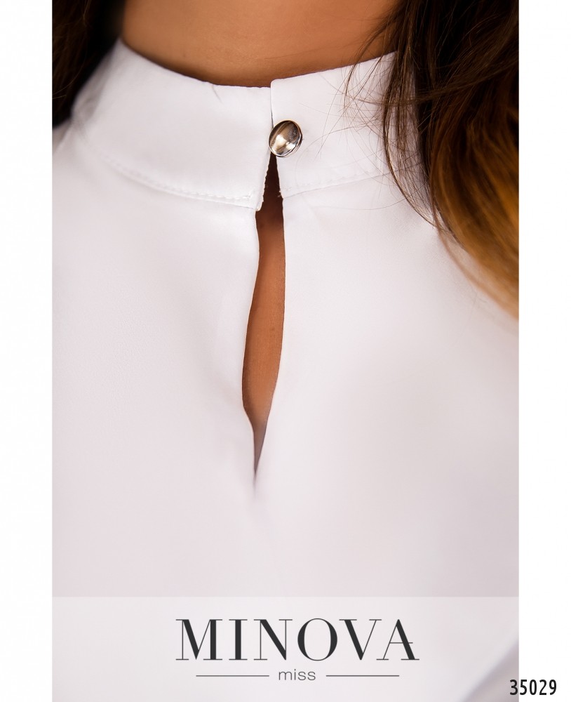 Нежная и стильная блуза с жабо из нового пополнения женской одежды от Minova отлично подойдёт для создания как делового, так и неформального гардероба благодаря разнообразию расцветок – белая, тёмная, зелёная, жёлтая и красная, на любой вкус! Блуза из очень лёгкой ткани, А-силуэта. Рукава полной длины, с манжетами, регулируются на пуговку и ленту. Воротник – небольшая стоечка, застёгивается на пуговку и петельку. Карманов нет. Блузу свободного кроя рекомендуется носить навыпуск с джинсами или брюками, а если сочетаете с юбкой, то лучше заправлять. Однотонная расцветка даёт возожность выбирать подходящие по цвету аксессуары.