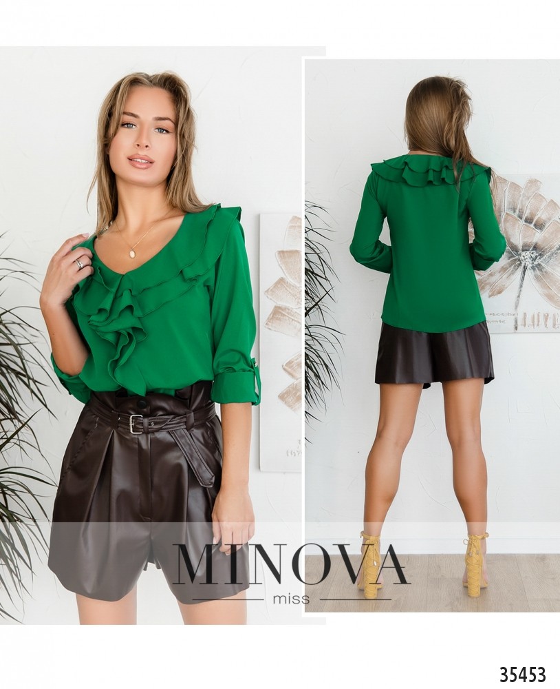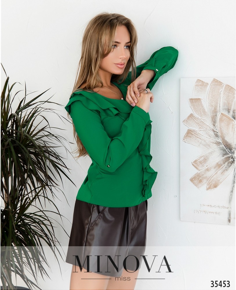 Жабо снова в моде, а значит, вы можете сделать свой повседневный наряд более романтичным и привлекательным! Minova представляет модель лёгкой блузы без застёжек и карманов. Аккуратные небольшие оборки украшают вырез горловины и спускаются до подола. Рукава полной длины, с возможностью отрегулировать их на ленту и пуговку. Блузка из очень лёгкой и приятной к телу ткани, не сильно просвечивается. Классический чёрный и белый оттенки подойдут для строгого дресс-кода с деловым костюмом или юбкой, а нежные яркие оттенки – для наряда на свидание или прогулку. Хорошо смотрится на любой фигуре благодаря свободному крою.