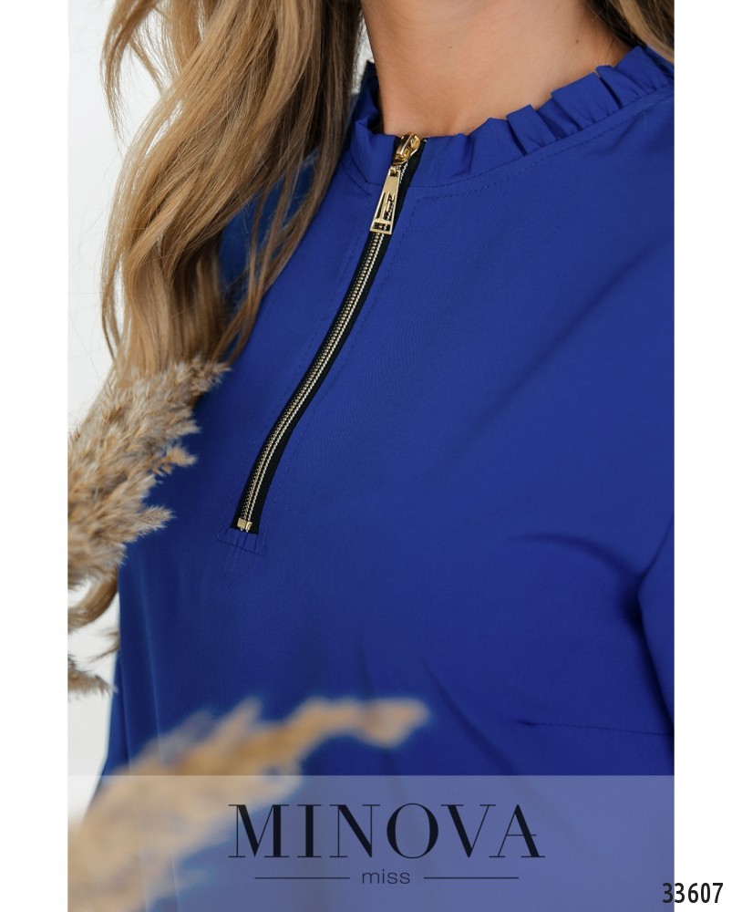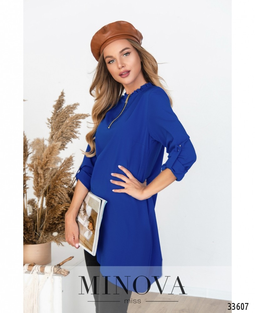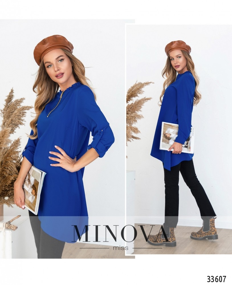 Необычная асимметричная рубашка из новой коллекции Minova придаст вашему образу нотку бесшабашности, особенно учитывая яркие, радостные, насыщенные оттенки. Застёгивается на молнию от воротничка до середины груди, воротник-стоечка с оборками. На груди – вытачки. На манжете – аккуратная квадратная пуговка цвета металлик, а регулируется рукав лентой, застёгивающейся на такую же пуговку. Скошенный подол – идеальный выбор для девушек с «прямоугольной» фигурой, но в принципе такой фасон будет хорошо смотреться на любой фигуре. Дополните образ любимыми джинсами или брюками, подойдёт и юбка-карандаш.