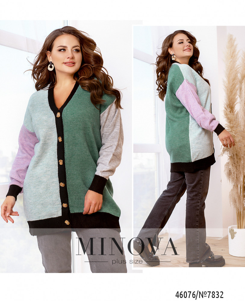 универсальный(50-60) р-р: длина свитера 84см, длина рукава от горловины 81см, обхват рукава 42см, ОГ - 122см, ОТ -120см, ОБ -120см.