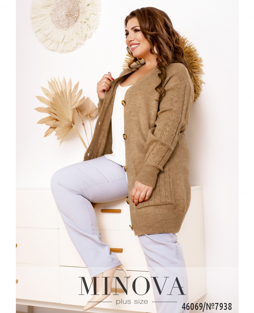 Эта мягкая вязанная кофта-кардиган привлечет внимание любительниц минимализма. Однотонная лаконичная модель выглядит выразительно за счет узоров на рукавах с приспущенной линией плеч и на накладных карманах, пришитых по бокам. Эта модель станет хорошим дополнением вашего базового гардероба.