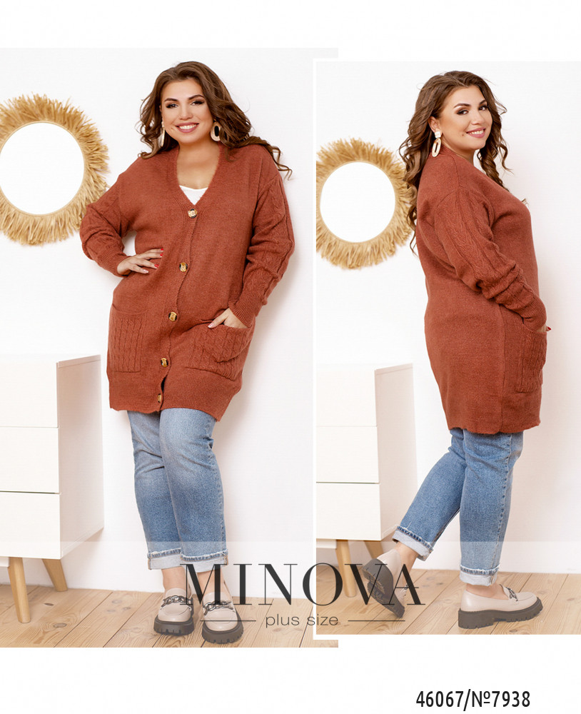 универсальный(50-56) р-р: длина свитера 87см, длина рукава от горловины 77см, обхват рукава 42см, ОГ - 108см, ОТ -104см, ОБ -104см.