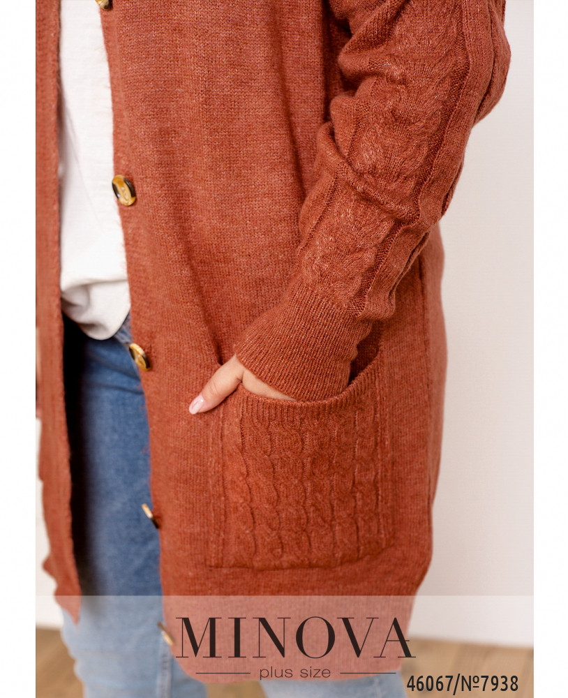 Эта мягкая вязанная кофта-кардиган привлечет внимание любительниц минимализма. Однотонная лаконичная модель выглядит выразительно за счет узоров на рукавах с приспущенной линией плеч и на накладных карманах, пришитых по бокам. Эта модель станет хорошим дополнением вашего базового гардероба.