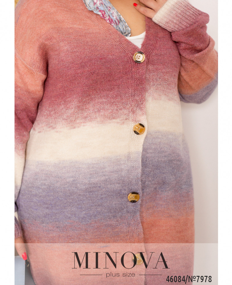 Яркая вязаная кофта-кардиган порадует поклонниц практичной одежды на каждый день. Она выглядит одновременно выразительно за счет своей расцветки и лаконично за счет минималистичного фасона с рукавами с приспущенной линией плеч.