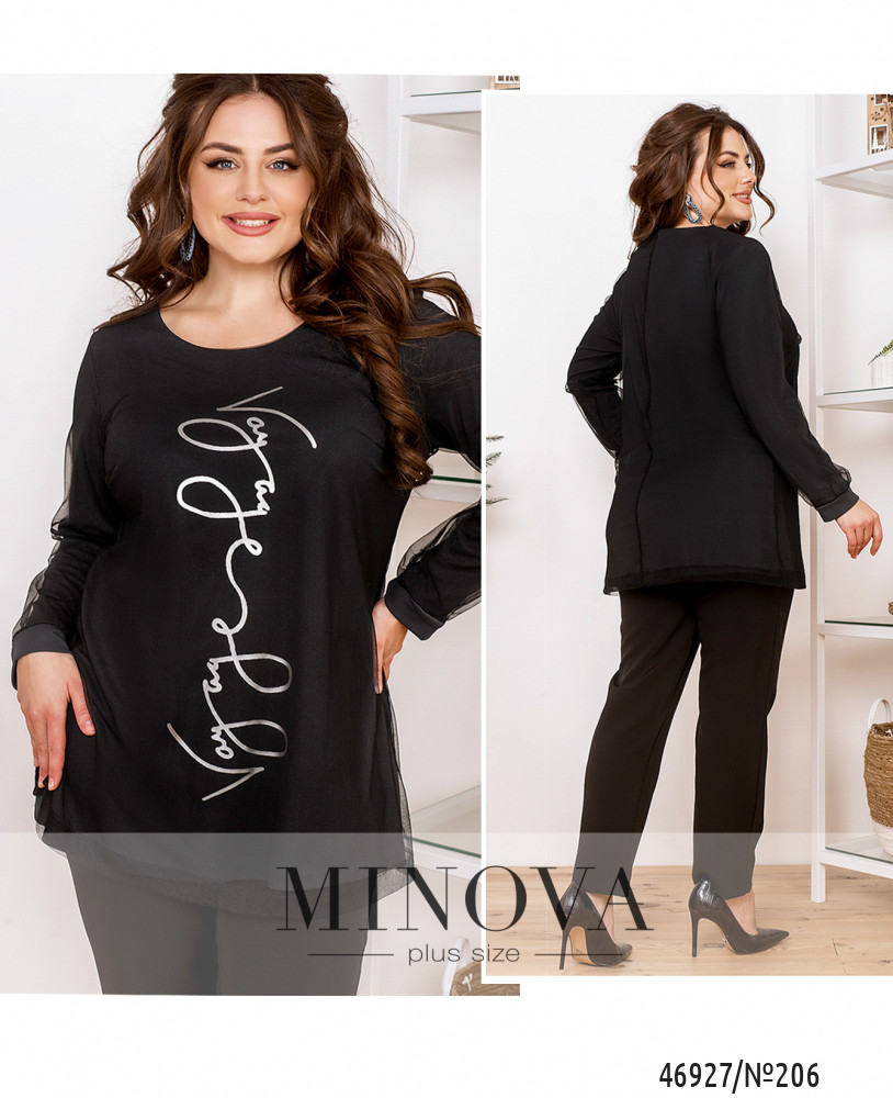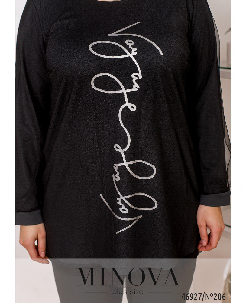 Воздушная нарядная туника хорошо садятся по фигуре, вне зависимости от ее особенностей. Двуслойная модель лаконичного кроя дополнена длинными рукавами с манжетами и ярким принтом спереди.