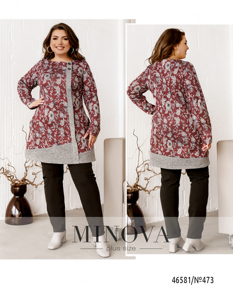 58-60 р-р: длина туники 83см, длина рукава от горловины 73см, длина рукава от плечевого шва 61см, обхват рукава 48,5см, ОГ - 124см, ОТ -118см, ОБ -138см.