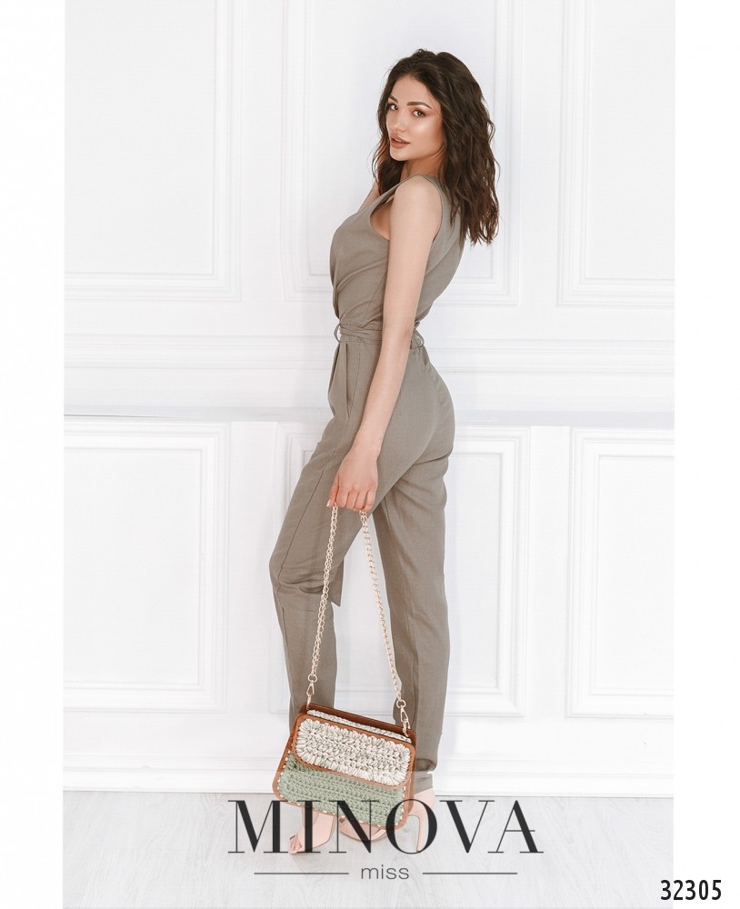 Идеальный наряд для работы, прогулок, вечеринки – и как это всё сочетается в одном комбинезоне от Minova? Очень просто: лёгкий льняной брючный комбинезон с запАхом подчеркнет женственность и добавит строгости благодаря зауженным брюкам и открытым плечам. Застёгивается на вшитую по спинке застёжку-молнию до талии. Пояс идёт в комплекте; на брюках – карманы. Прекрасный вариант для фигуры типа «прямоугольник», «песочные часы» или «груша». Аккуратные туфли-лодочки прекрасно дополнят романтический или деловой образ.