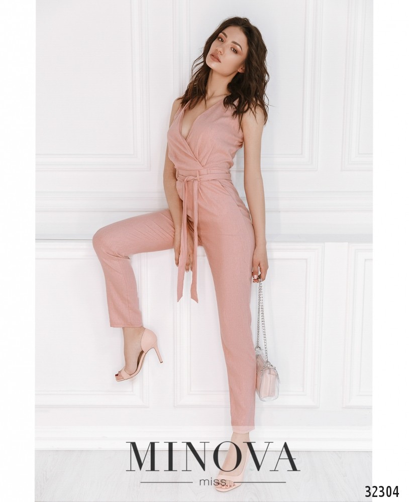 Идеальный наряд для работы, прогулок, вечеринки – и как это всё сочетается в одном комбинезоне от Minova? Очень просто: лёгкий льняной брючный комбинезон с запАхом подчеркнет женственность и добавит строгости благодаря зауженным брюкам и открытым плечам. Застёгивается на вшитую по спинке застёжку-молнию до талии. Пояс идёт в комплекте; на брюках – карманы. Прекрасный вариант для фигуры типа «прямоугольник», «песочные часы» или «груша». Аккуратные туфли-лодочки прекрасно дополнят романтический или деловой образ.