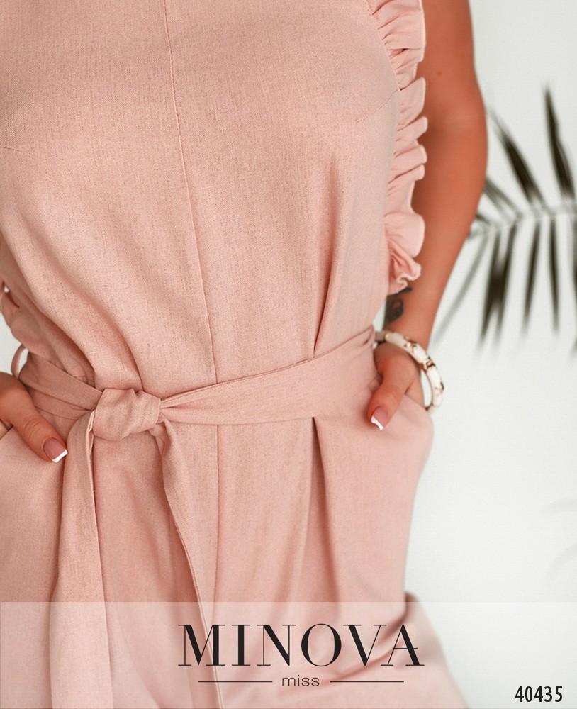 Нежный, очень удобный комбинезон с оборками на бретелях и до талии. В комплекте пояс. Застёгивается на молнию, вшитую по спинке. По бокам - врезные карманы, на груди вытачки. Пояс/аксессуар входит в комплект.