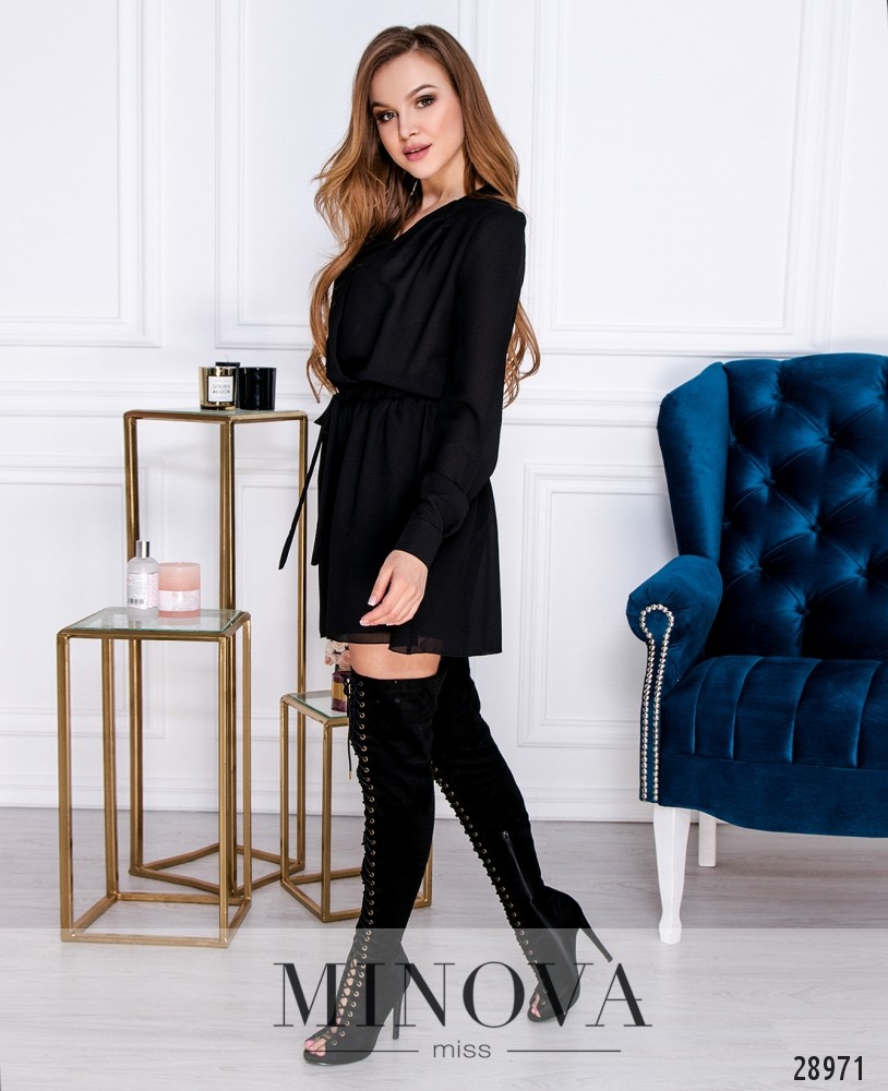 Притягательный комбинезон с шортами из летящего шифона. Комбинезон оригинального кроя с глубоким вырезом на запАх и объемными шортами-юбкой. Талия регулируется вшитым поясом-шнурком. Плечи оформлены защипами, которые создают драпировку лифа. Рукава собраны в манжеты на пуговицах.