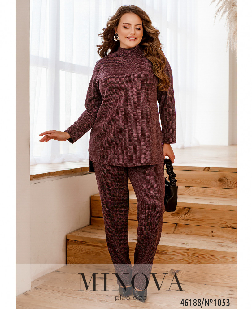 Женственный костюм, состоящий из туники и брюк, абсолютно по-разному выглядит в паре с изящными лодочками на шпильке, лоферами или кроссовками. Туника прямого кроя с длинными рукавами и воротником-стоечкой идеально дополнена лаконичными брюками в тон на резинке с карманами в боковых швах. Пояс НЕ входит в комплект.