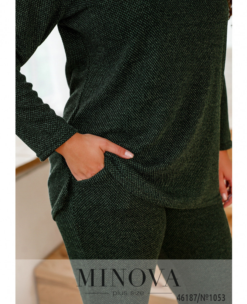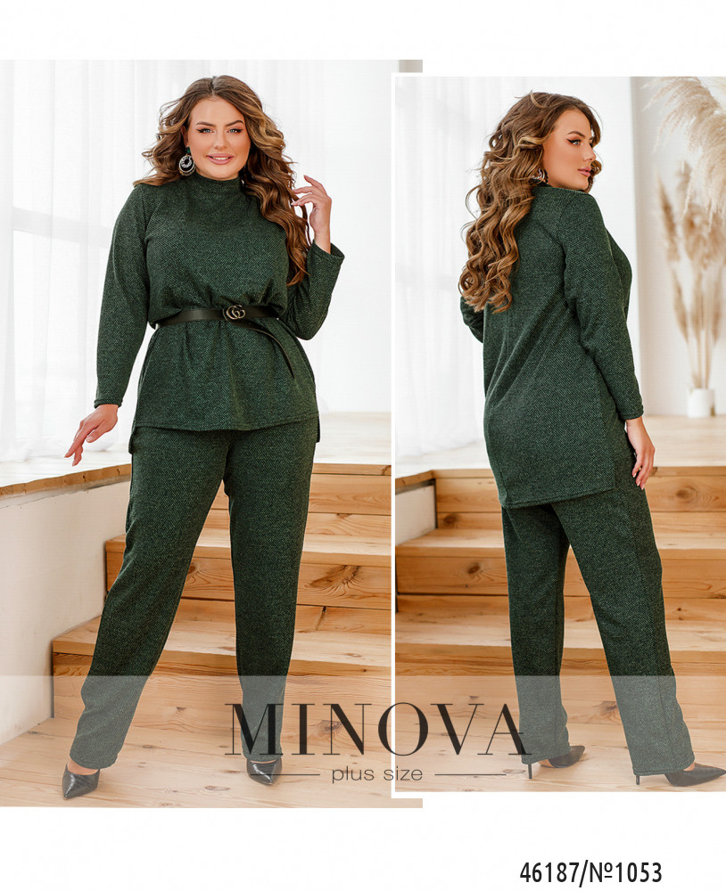 Женственный костюм, состоящий из туники и брюк, абсолютно по-разному выглядит в паре с изящными лодочками на шпильке, лоферами или кроссовками. Туника прямого кроя с длинными рукавами и воротником-стоечкой идеально дополнена лаконичными брюками в тон на резинке с карманами в боковых швах. Пояс НЕ входит в комплект.